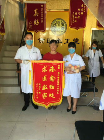 ,针灸!输液!火针!电针!贴膏药!割腮等方法均用过没什么效果来前眼闭不上!露白!示齿受限!抬眉不动!特殊口型!眼睑外翻!面肌提不起来等症状看广告来到贡氏牵正堂面瘫康复中心经过贡氏四联循经疗法一段时间精心理疗,已基本痊愈今日阿姨特意送来锦旗一面和大蟠桃10个寓意十全十美同时也祝愿我们所有的顾客幸福美满!健康快乐!