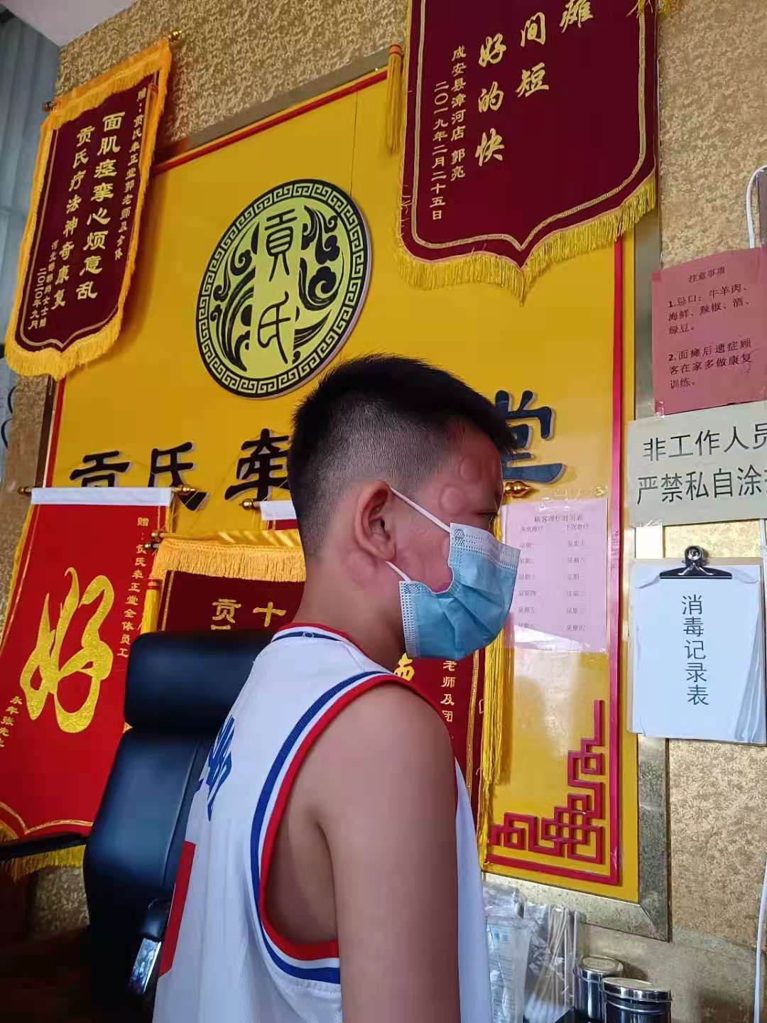 小帅哥邯山区人今年8岁,上小学一年级病毒性面瘫,后朋友介绍来到我们贡氏牵正堂面瘫康复中心,