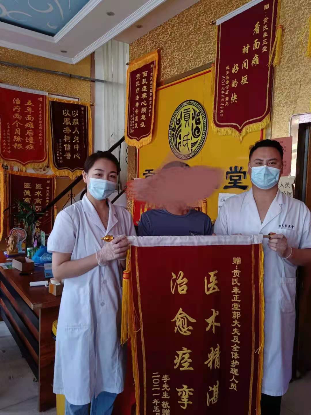 经过贡氏四联循经四个疗程左右的精心调理,现已康复大哥非常高兴,送锦旗一面感谢李哥的信任与支持