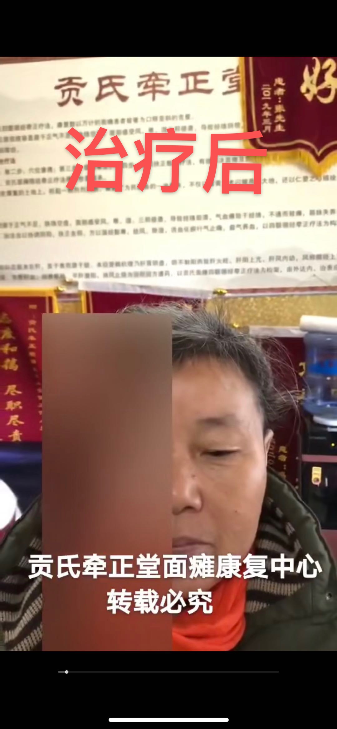 经顾客同意案例分享大姐病毒性面瘫,发病第三天到我们贡氏牵正堂面瘫康复中心,刚来时,抬眉不动,闭不上眼,流泪,斜卵型口型,鼓腮漏气,面肌不动经过我们贡氏四联循经疗法不到1个疗程的理疗。已基本康复(基本康复)